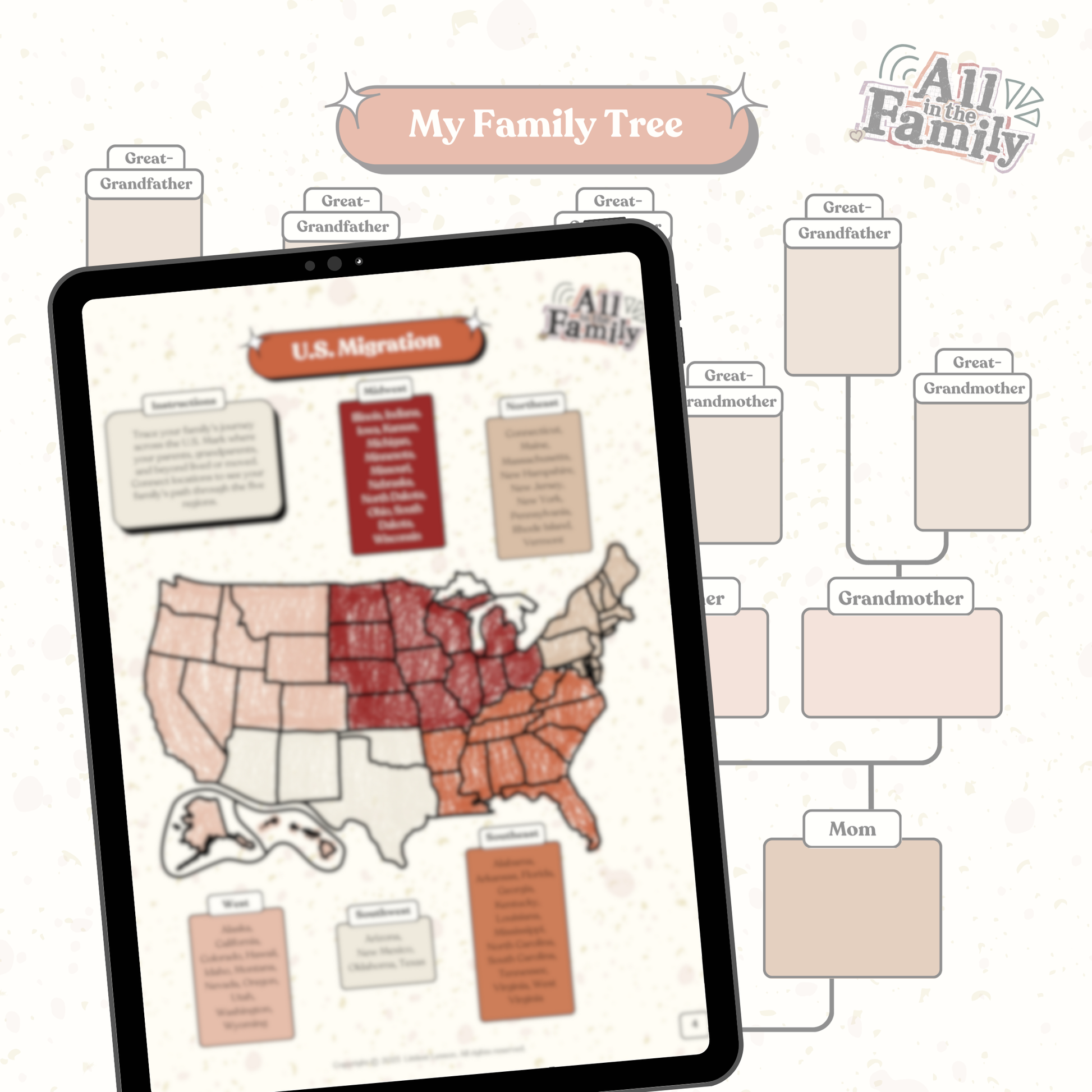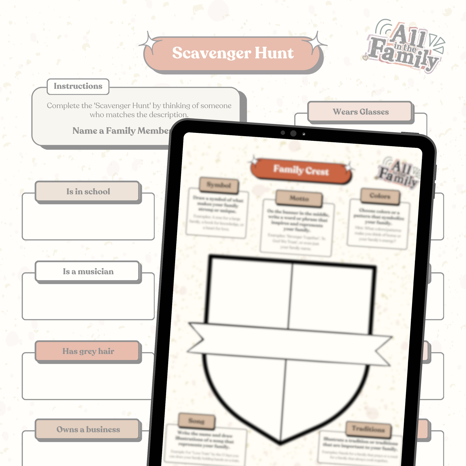 This is the complete version of All in the Family—built to help your household turn family names, memories, and real conversations into a keepsake you’ll actually want to save. Kids can move at their own pace: fill in a detailed family tree, interview relatives through guided profiles, design a family crest, build a heritage timeline, map family migration, and reflect with writing prompts and Black history questions that make it personal—not just “history class.”